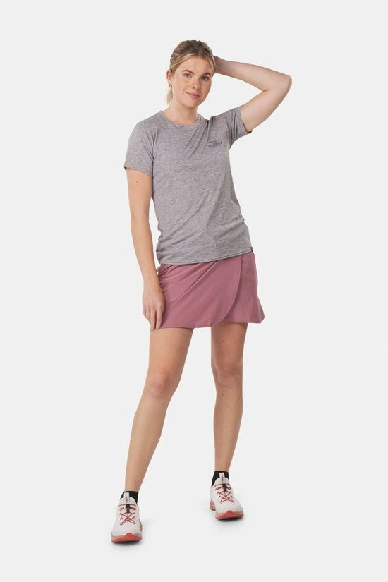 De buitenrok van de Fleetwith is behandeld met een DWR (duurzame waterafstotende) afwerking en is super-elastisch, kreukvrij en sneldrogend. Dankzij de taillezoom met trekkoord aan de buitenkant is de pasvorm verstelbaar. De skort is uitgerust met twee steekzakken met rits aan de voorzijde en een verborgen binnenzak. De rok heeft een zoom die tot boven de knie valt.